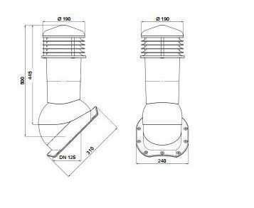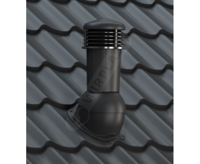 - Вентиляционный выход WIRPLAST NORMAL PLUS d125/110 h500 с отводом конденсата неизолированный с проходным элементом для мягкой и фальцевой кровли черный