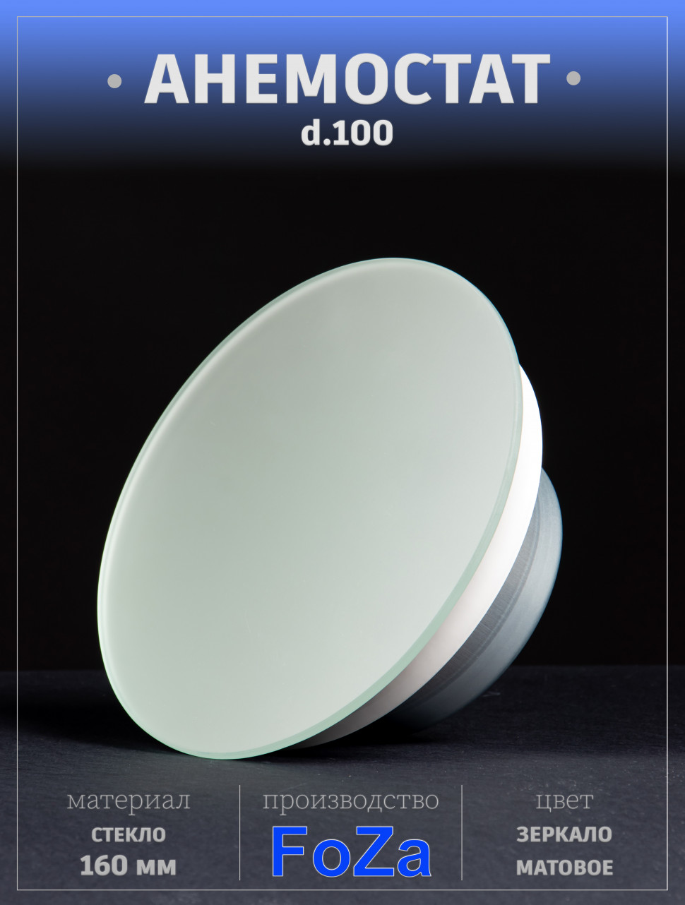 Анемостат со стеклянной внешней частью FOZA D 100 мм. Матовое зеркало. Белый круглый