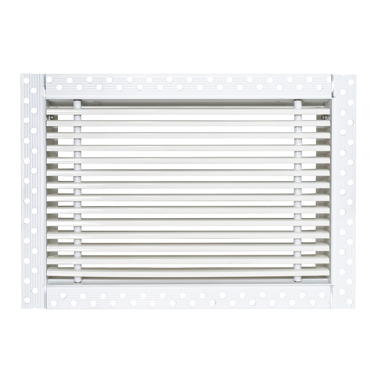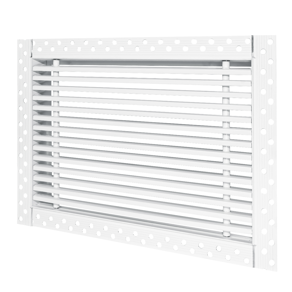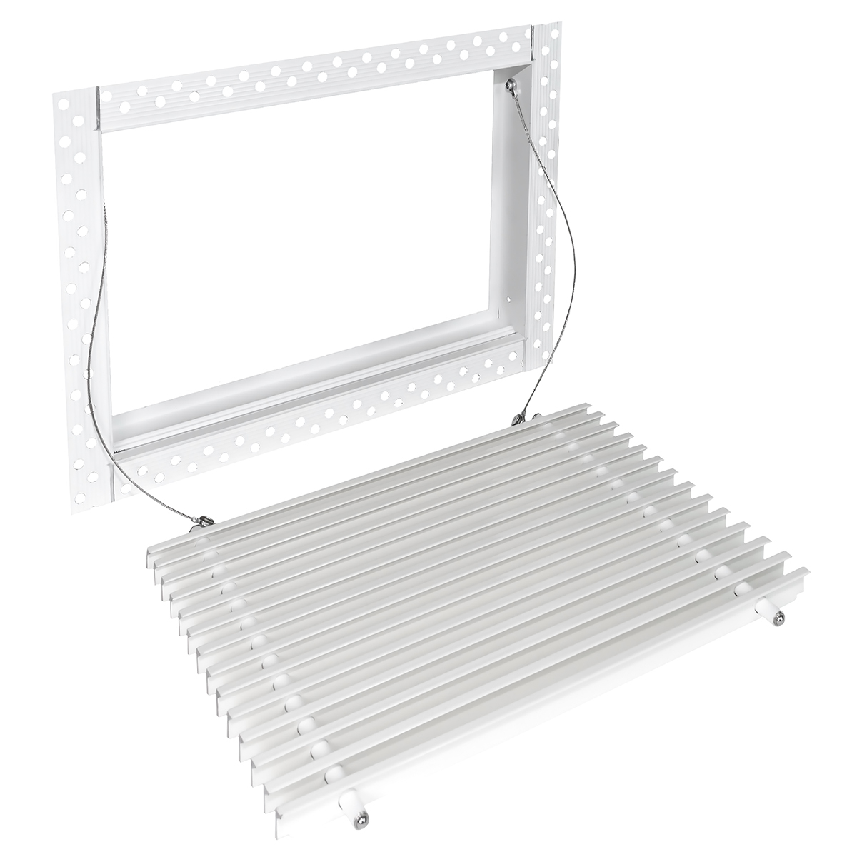 Данная решетка подходит для монтажа на любую поверхность под финишную отделку. Рамка и экран изготовлены из алюминия, опора экрана - из оцинкованной стали. Рама оснащена «полкой» 1,9 мм и рифлеными краями для большей адгезии финишного материала – шпатлевки, цемента. Решетка имеет съемную центральную часть с фиксированным углом наклона ламелей 15°. Она крепится к корпусу прочными металлическими тросиками, легко снимается для очистки и удобного обслуживания.