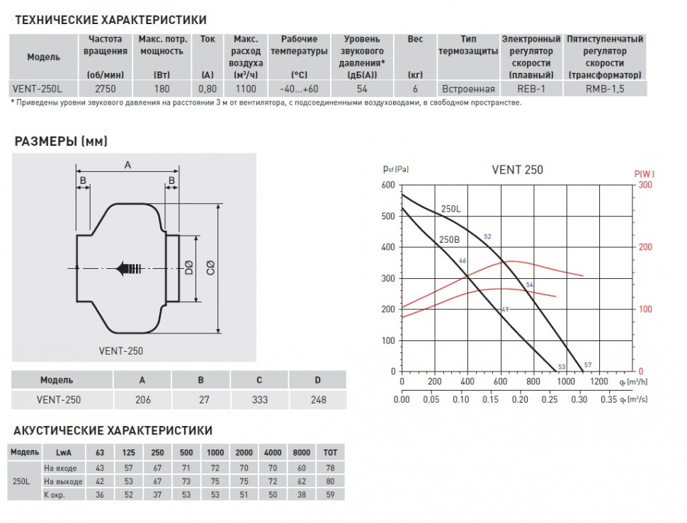 Вентилятор может устанавливаться под любым углом и обеспечивает исключительный диапазон воздухопроизводительности при высоком статическом давлении, которое обычно присутствует в канальных системах воздуховодов.