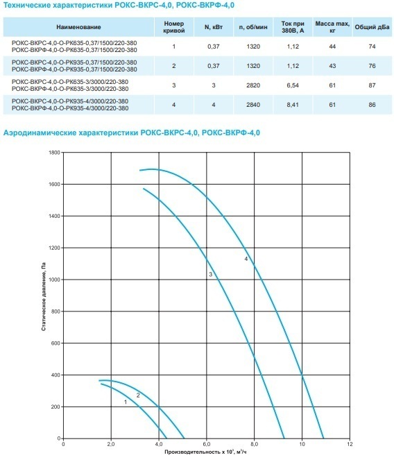 Вентиляторы выпускают с двумя типами рабочих колес РК635 и РК935 с различными расходными характеристиками.