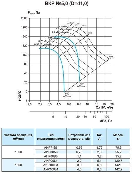 - Относительные диаметры рабочих колес (коэффициенты): 1,0