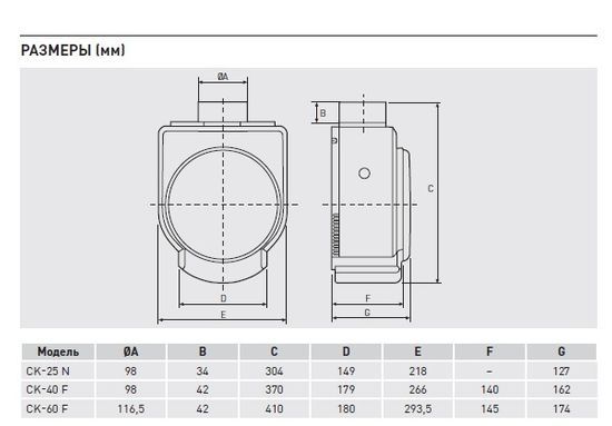 Кухонные вытяжка CK-25N - центробежный вентилятор предназначенный для удаления загрязненного и влажного воздуха из кухни.