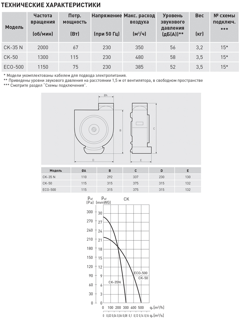 Вентиляторы изготавливаются из листовой стали и окрашены эпоксиднополиэфирной краской. Вентиляторы комплектуются центробежными рабочими колесами и однофазными электродвигателями (230В-50Гц).