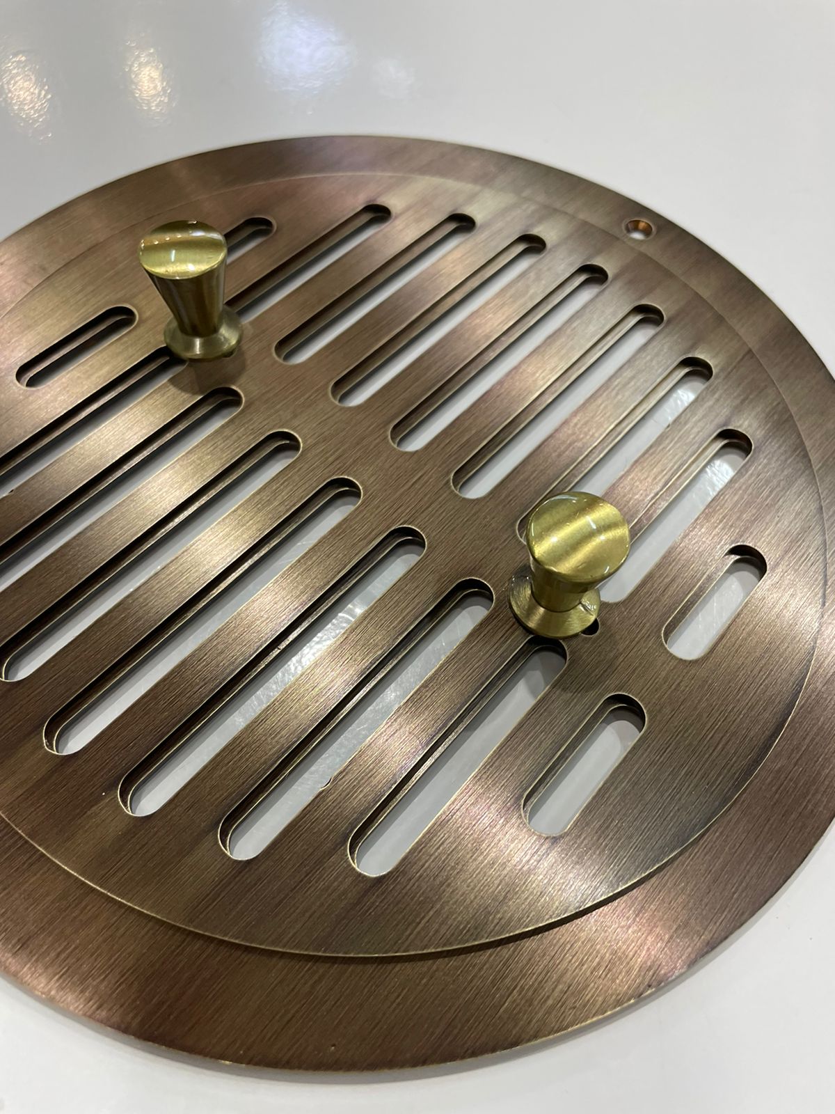 - Вентиляционная решётка ЛРК 355 изготовлена из шлифованно латуни с патиной.