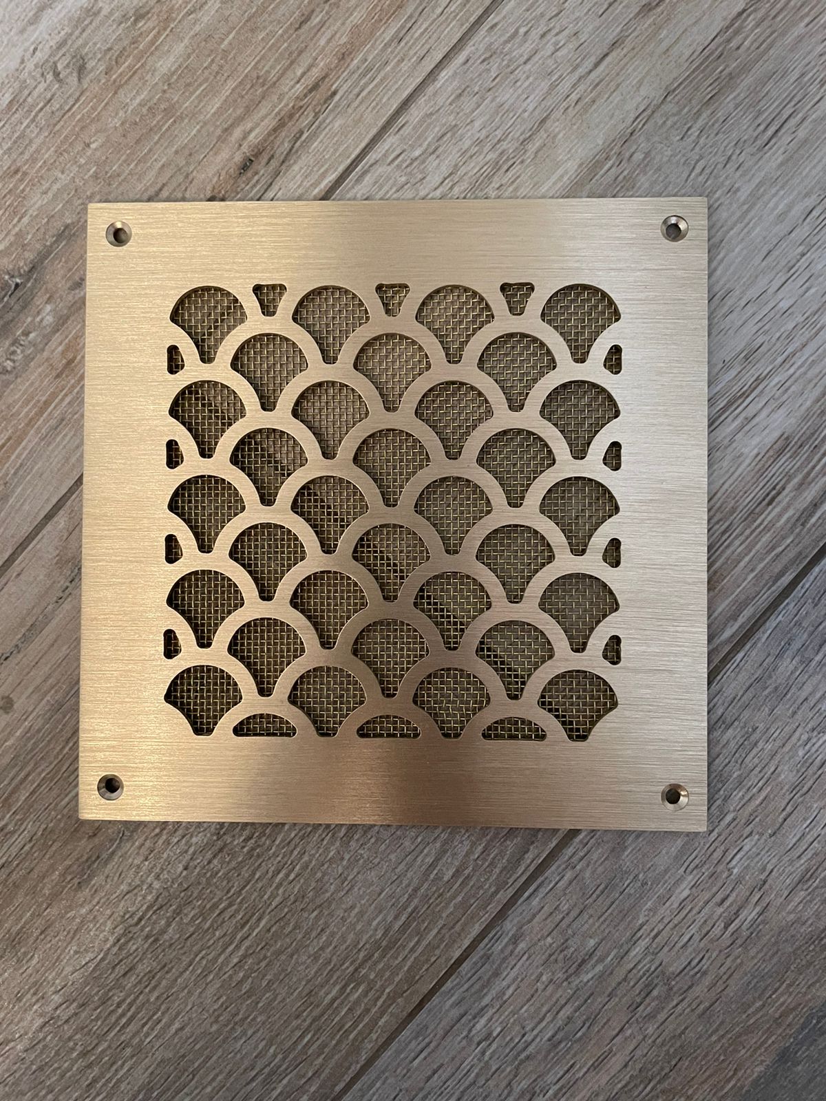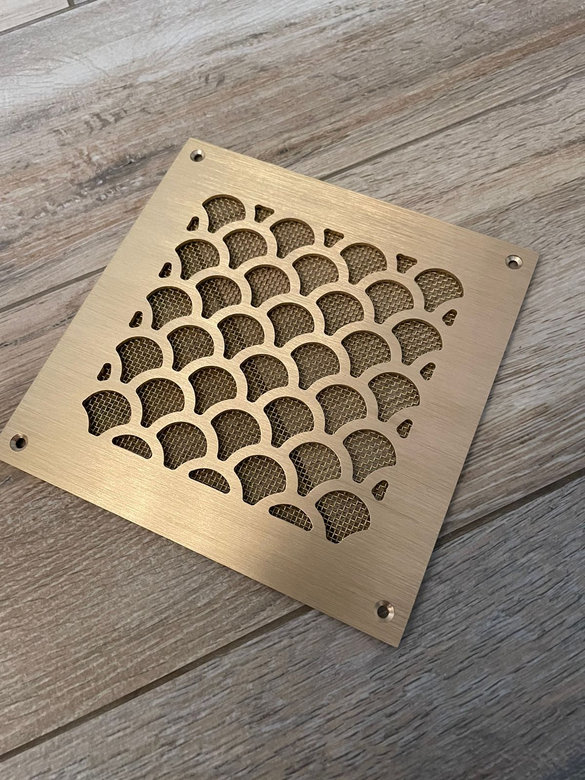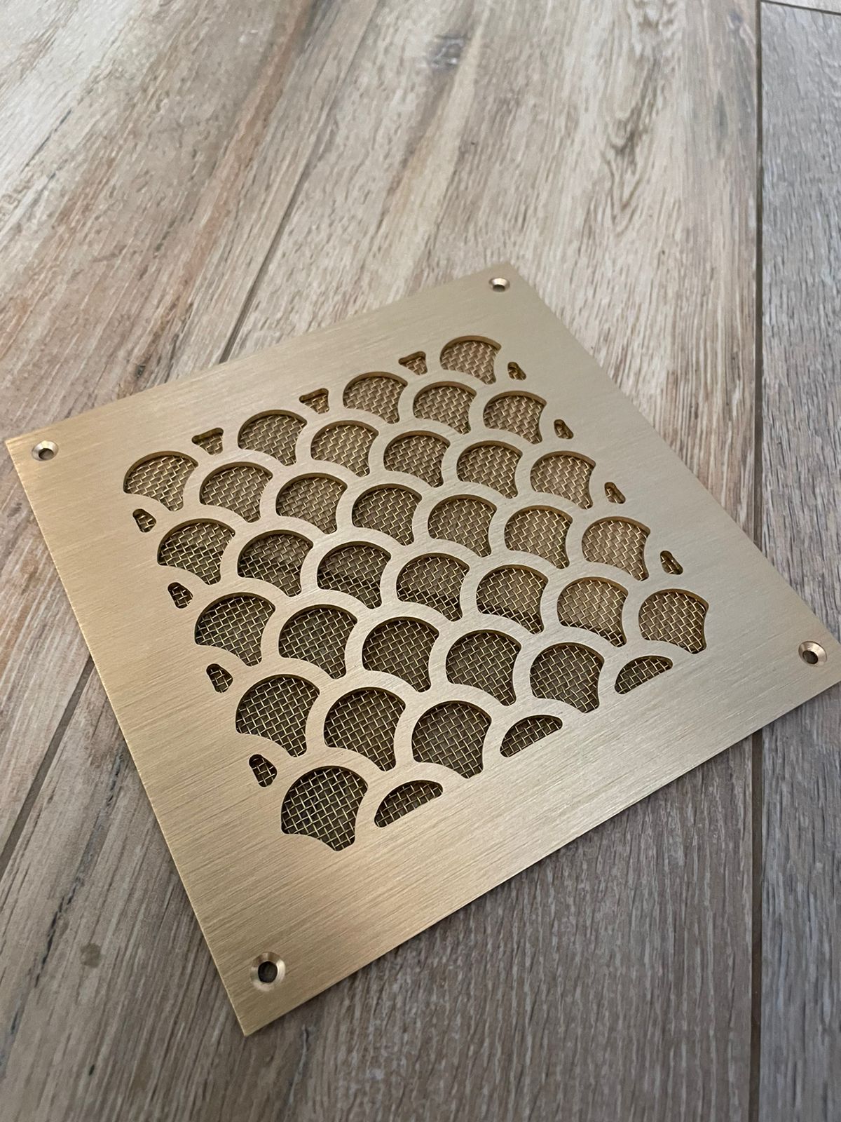 - Эта декоративная вентиляционная решётка может быть изготовлена из различных материалов: алюминий, сталь, латунь, нержавеющая сталь.