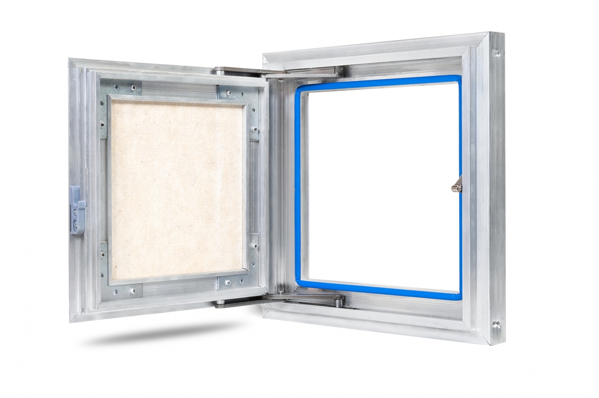 Рама люка для ревизии «Триумф» выполнена из алюминиевого профиля коробчатой формы и Г-образной в сечении для максимальной жесткости и удобства монтажа. Дверца люка изготавливается и алюминиевого профиля Т-образной формы, переменного сечения, с выраженными ребрами жесткости, что делает её конструкцию более жесткой в отличие от своих предшественников. Так как немаловажно исключить перекосы конструкции дверцы, чтобы не допустить деформации наклеенных на нее материалов. В отличие от наших конкурентов, толщина стенок алюминиевого профиля у нас по-прежнему 2 мм и более.
