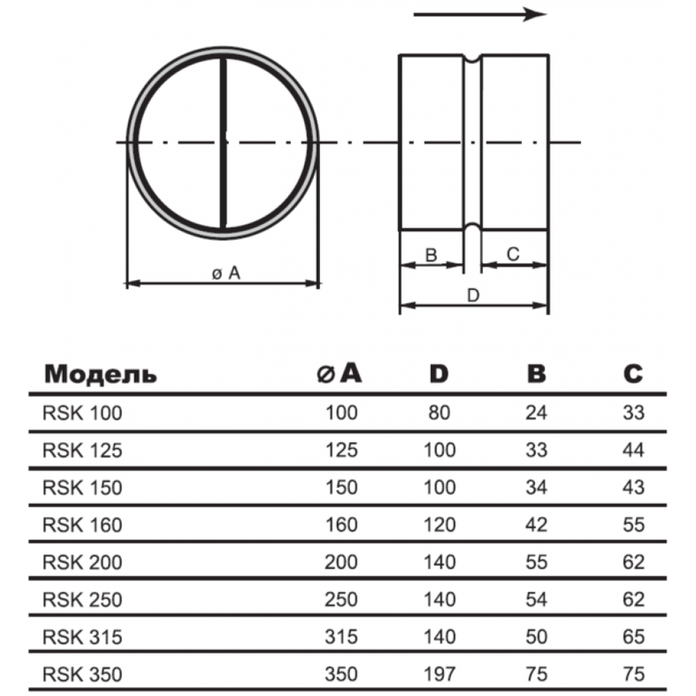 Обратный клапан для круглых каналов Airone RSK 200