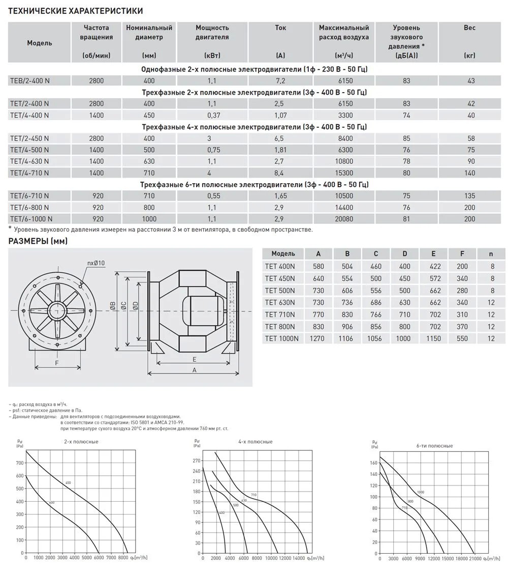 В зависимости от модели, вентиляторы комплектуются 2, 4 или 6 полюсными однофазными или трехфазными электродвигателями.