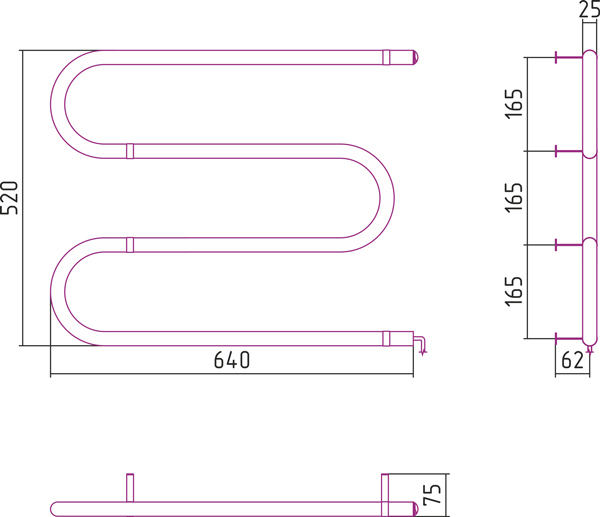Полотенцесушитель электрический Стилье ЭПС M-образный 500x600 (64 Вт)