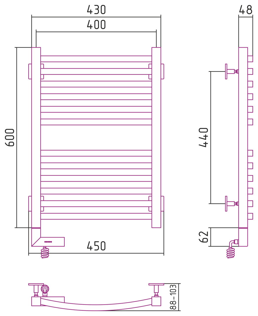 Полотенцесушитель электрический Сунержа Аркус 2.0 600x400