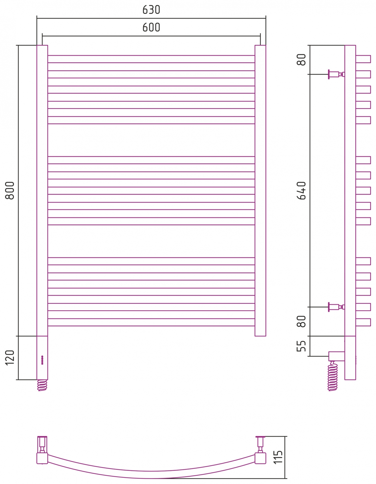 Полотенцесушитель электрический Сунержа Аркус 3.0 800x600