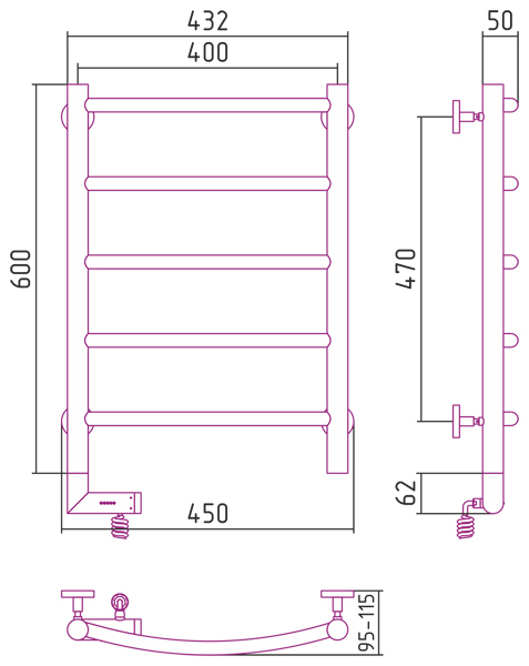 Полотенцесушитель электрический Сунержа Галант 2.0 600x400