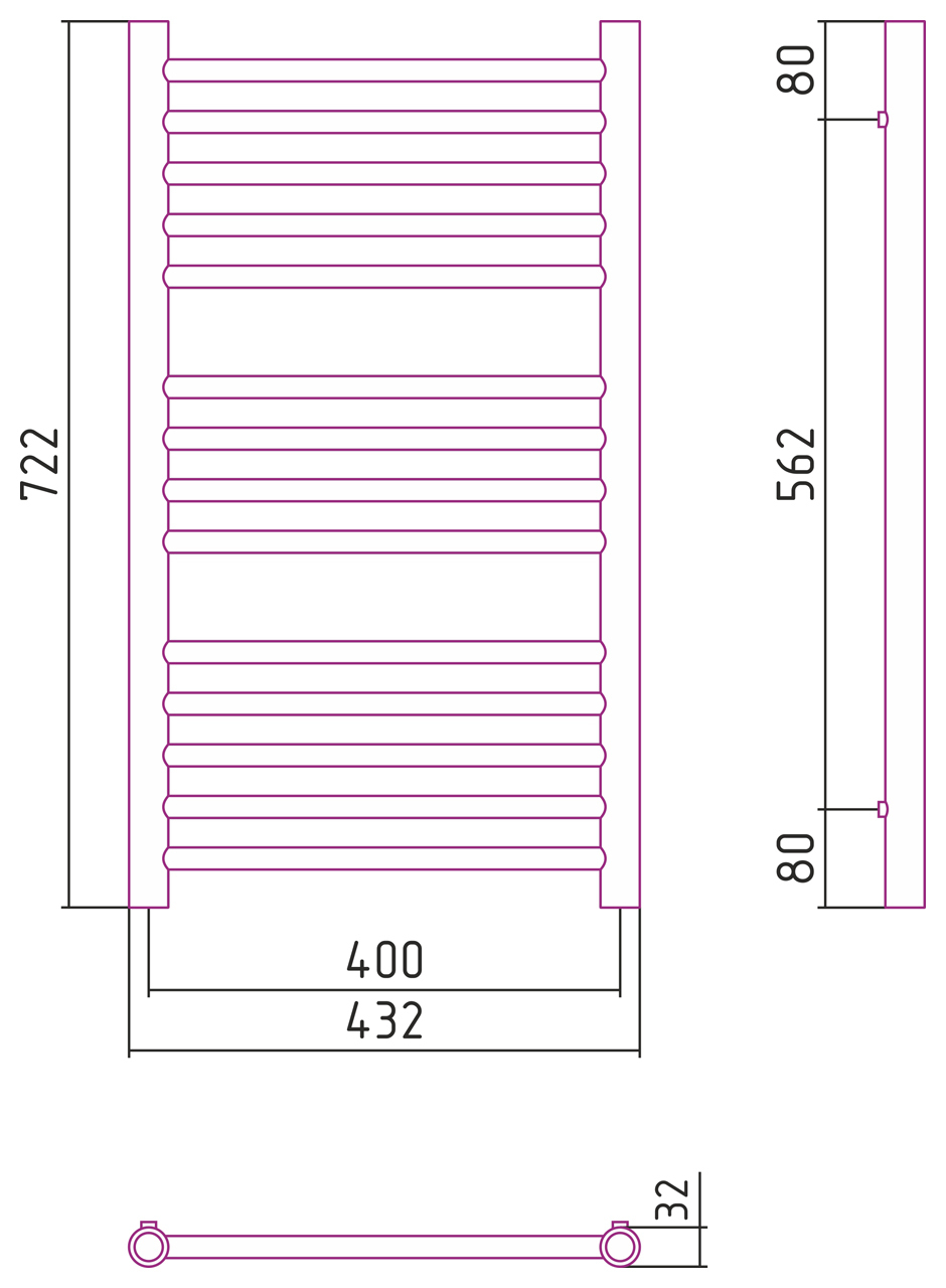 Размер полотенцесушителя:800x400