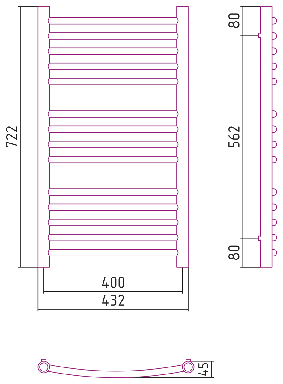 Полотенцесушитель комбинированный Сунержа Богема-ПРОФИ выгнутый 800x400. 00-5101-8040