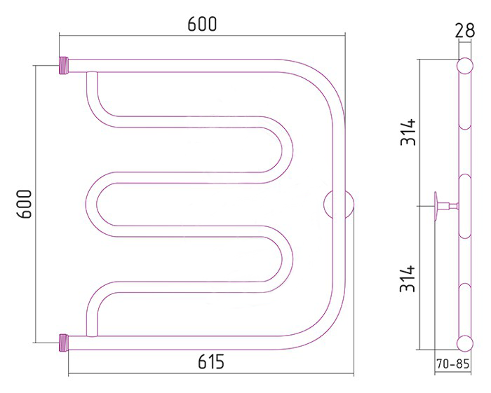 Полотенцесушитель водяной Стилье Тандем 600x600 + 2 полки
