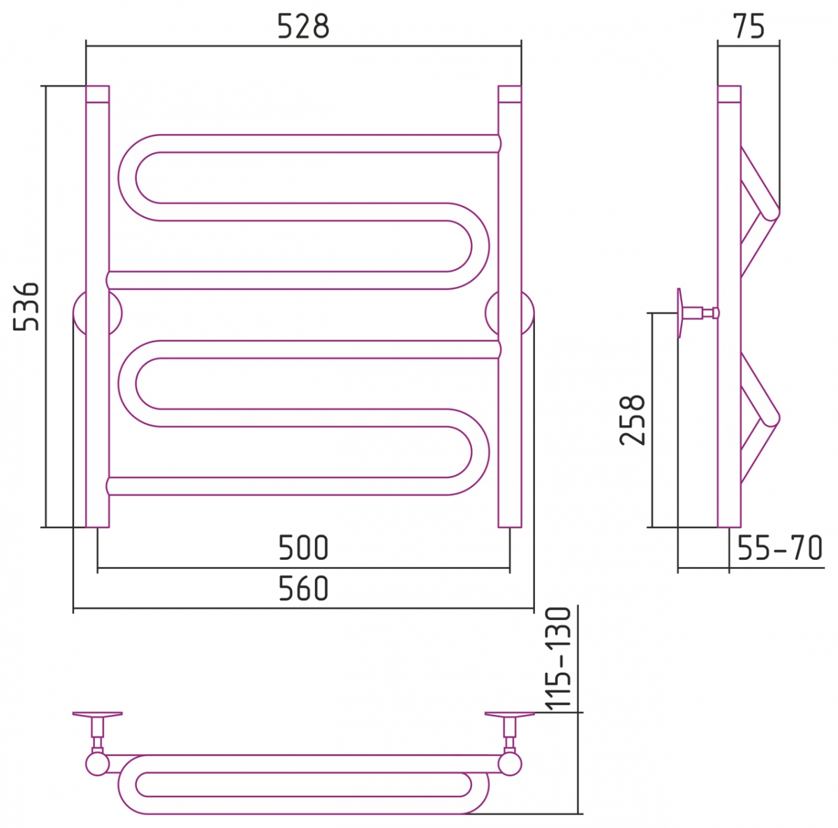 Полотенцесушитель водяной Стилье Универсал-51 600x500