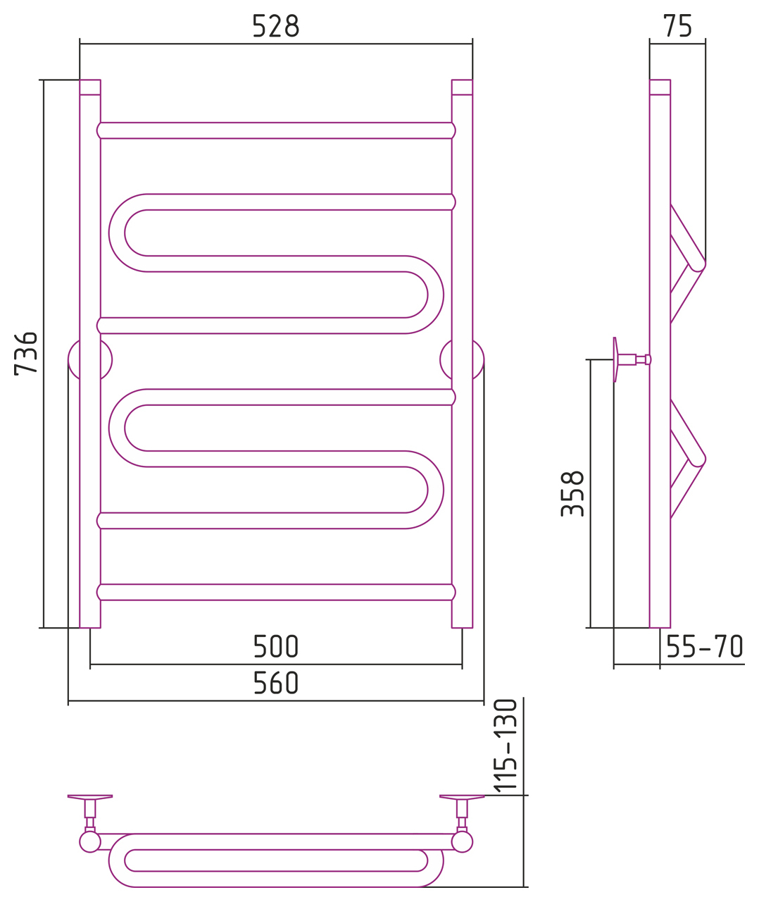 Полотенцесушитель водяной Стилье Универсал-51 800x500
