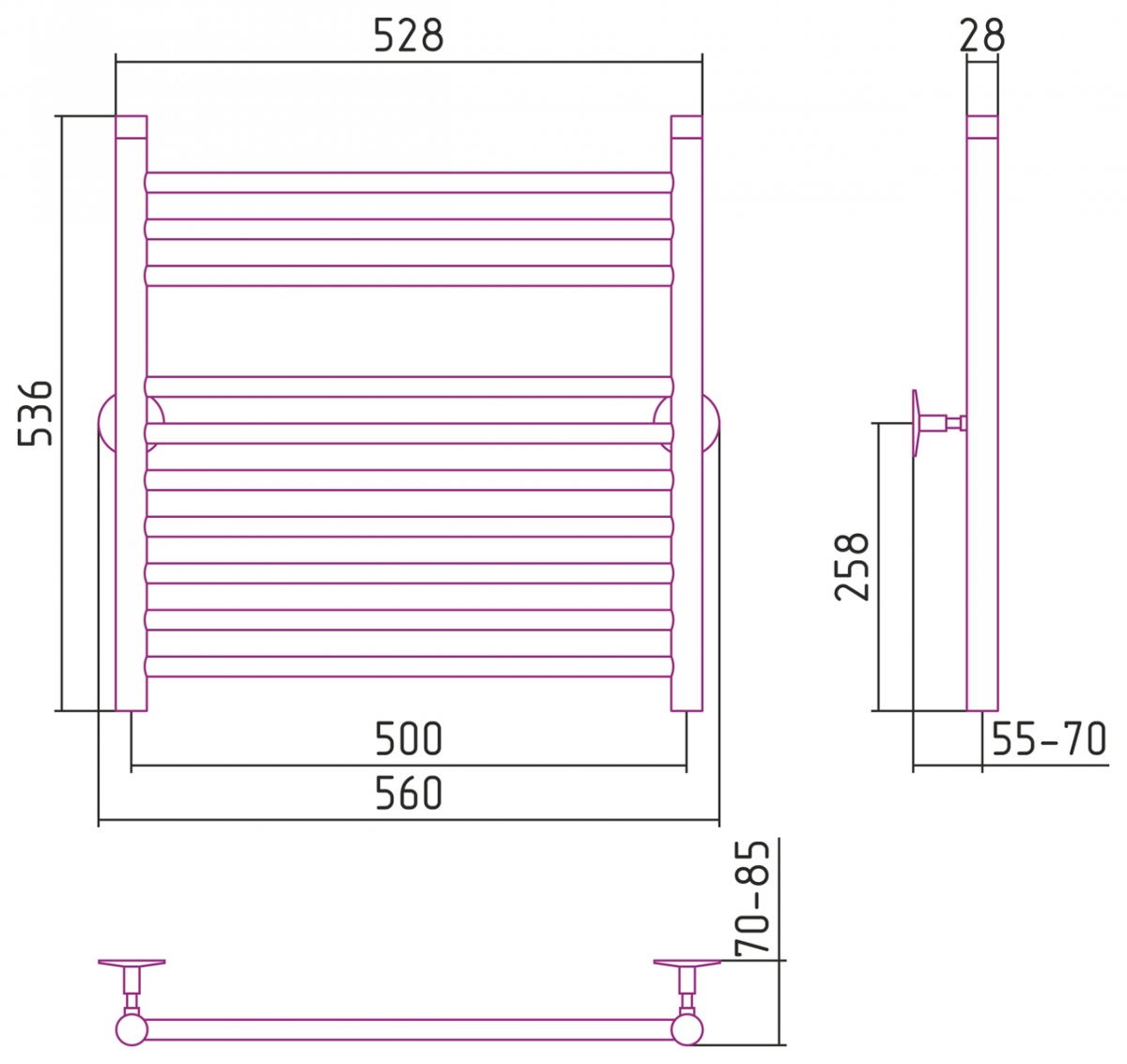 Полотенцесушитель водяной Стилье Универсал-53 600x500