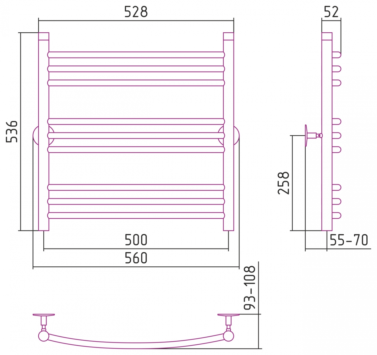 Полотенцесушитель водяной Стилье Универсал-58 600x500