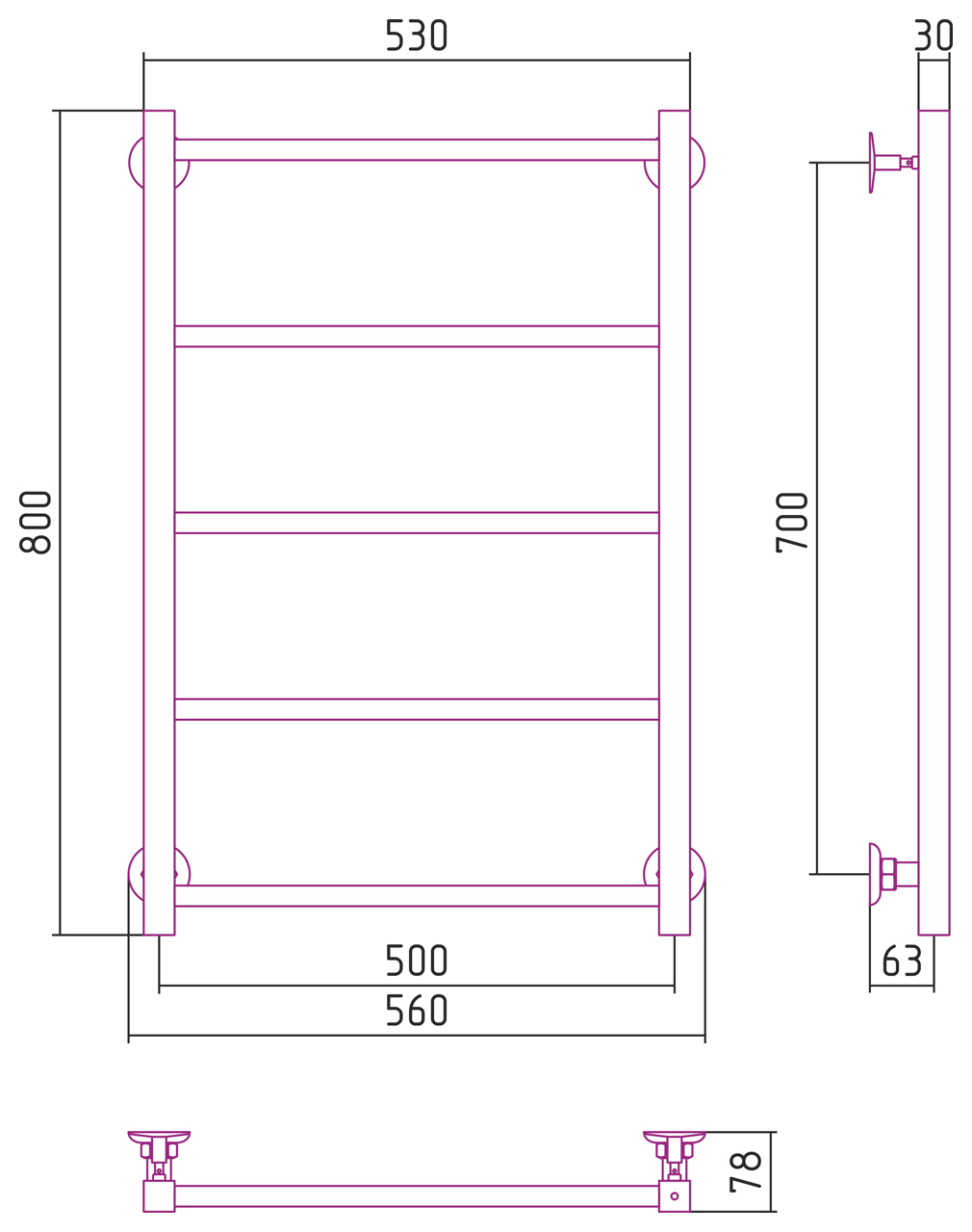 Полотенцесушитель водяной Стилье Версия-КН 800x500
