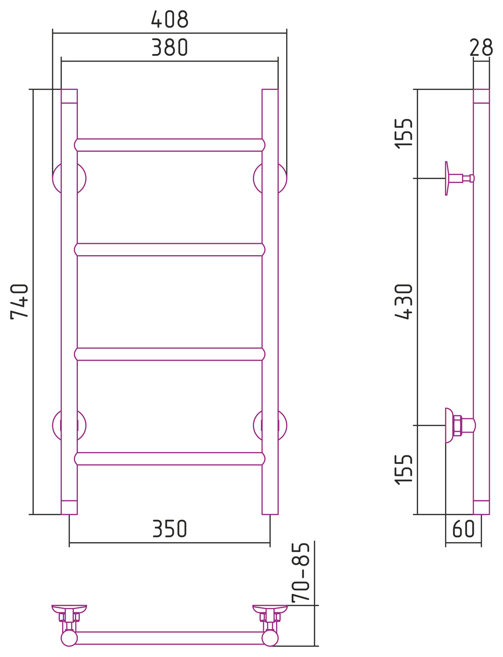 Полотенцесушитель водяной Стилье Версия-НВ 740x350