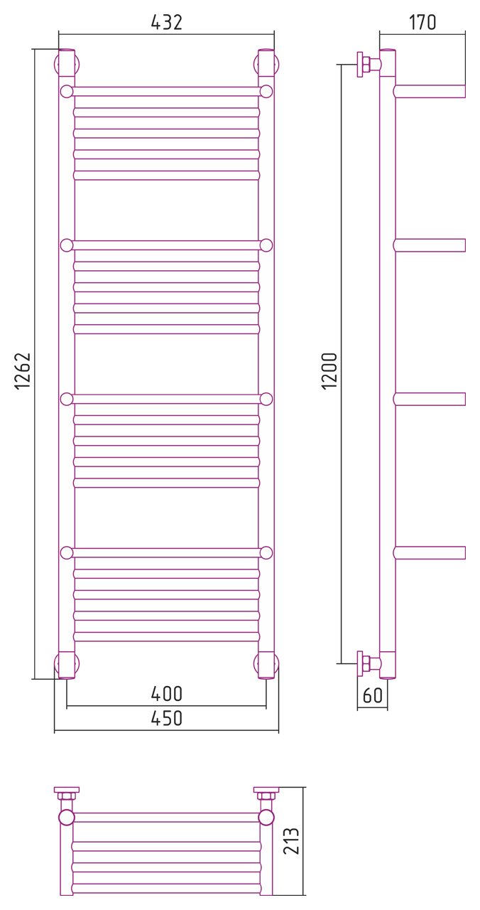 Внешние габариты (высота х ширина х глубина) (мм) : 1262x450x213