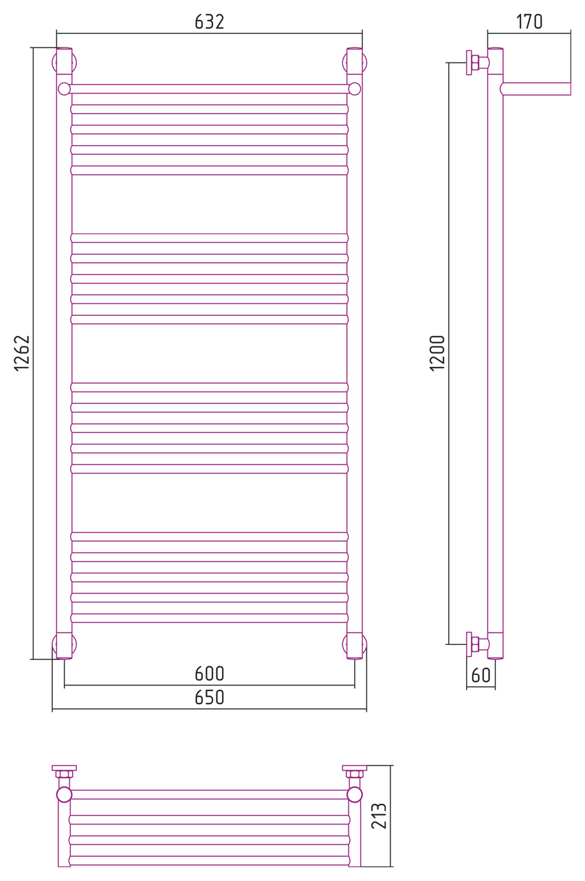Внешние габариты (высота х ширина х глубина) (мм) : 1262x650x213