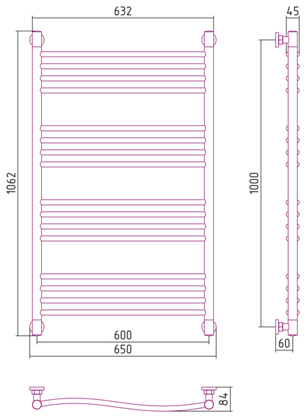 Внешние габариты (высота х ширина х глубина) (мм) : 1062 х 650 х 84