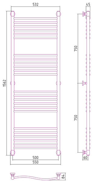 Полотенцесушитель водяной Сунержа Флюид+ 1500x500