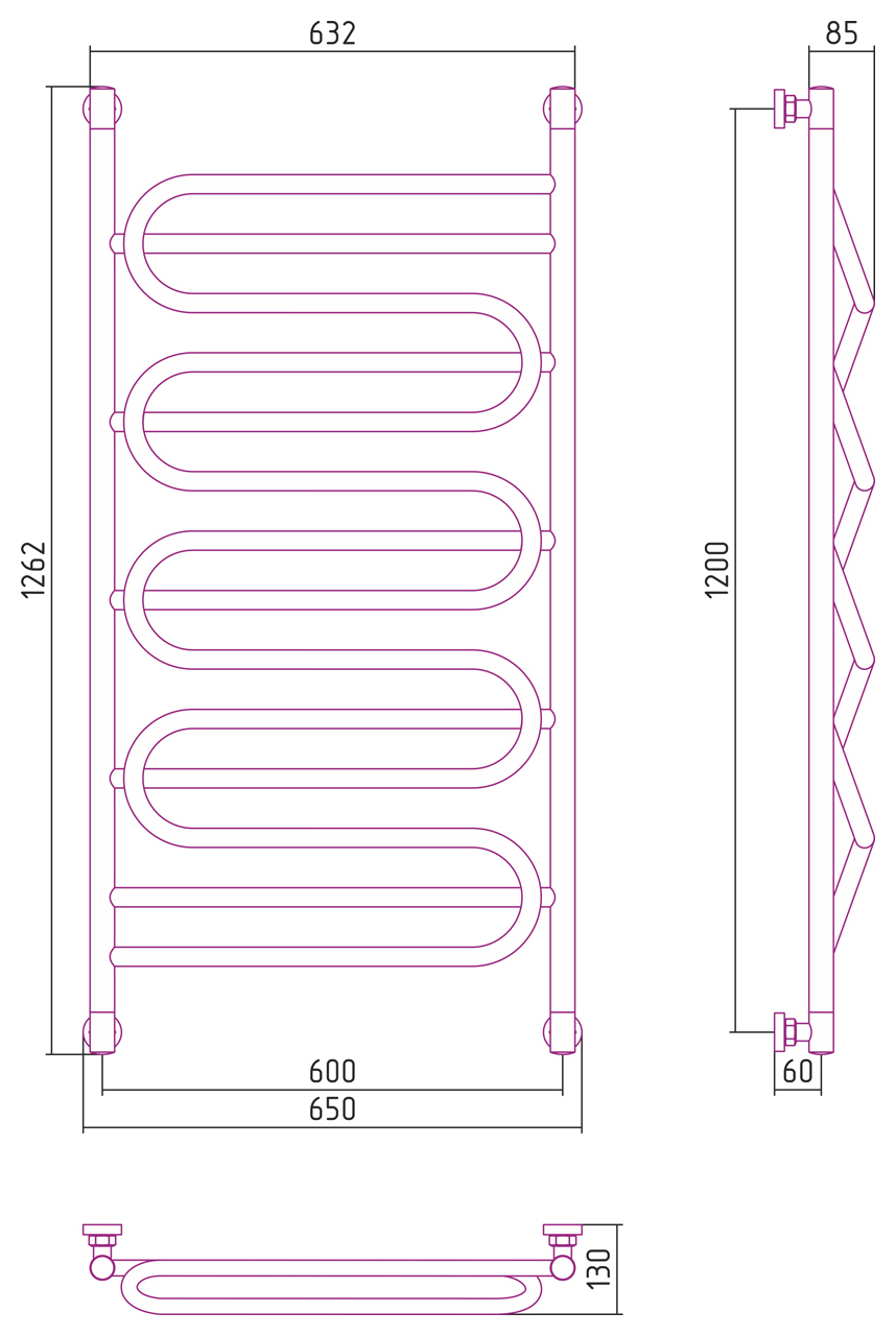 Полотенцесушитель водяной Сунержа Иллюзия+ 1200x600