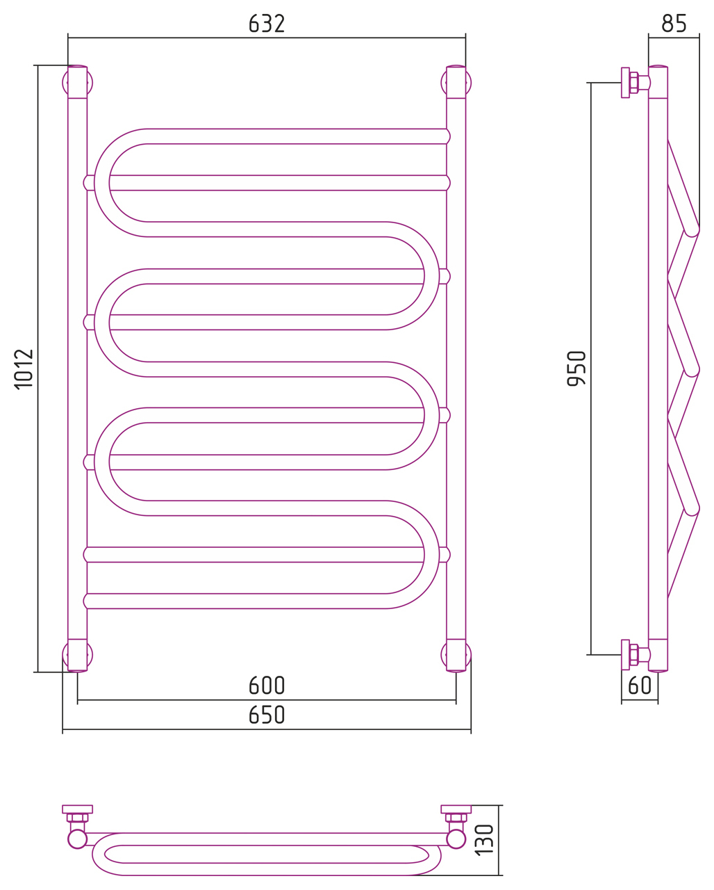Полотенцесушитель водяной Сунержа Иллюзия+ 950x600
