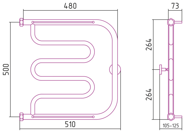 Необычный внешний вид конструкции – «П-образный», водяного полотенцесушителя Сунержа, модельного Лира, разнообразит интерьер вашей ванной комнаты.