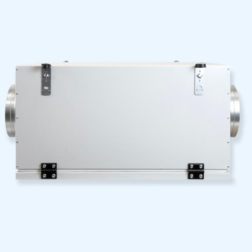 Установка имеет энергоэффективный ЕС – вентилятор. В нем отсутствуют тепловые потери, что позволяет достигать более высокий КПД - 80–90 %. Плавное и глубокое регулирование оборотов, обеспечиваемое EC-двигателями дает значительный эффект в части снижения суммарных значений потребляемой мощности.