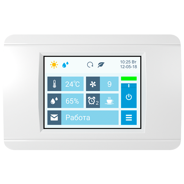 - Возможность управления увлажнителем воздуха с пульта вентустановки.