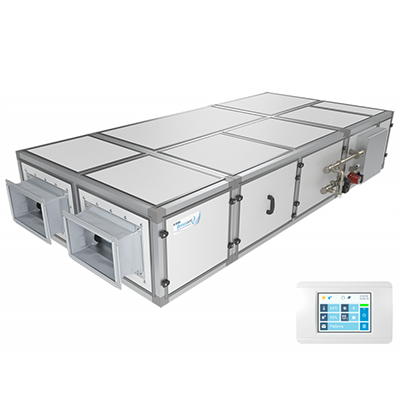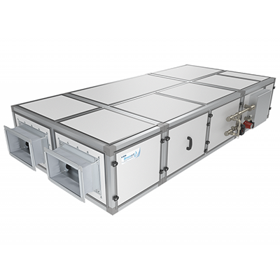 - Приточно-вытяжная установка подвесного типа с пластинчатым рекуператором, системой защиты от замерзания.