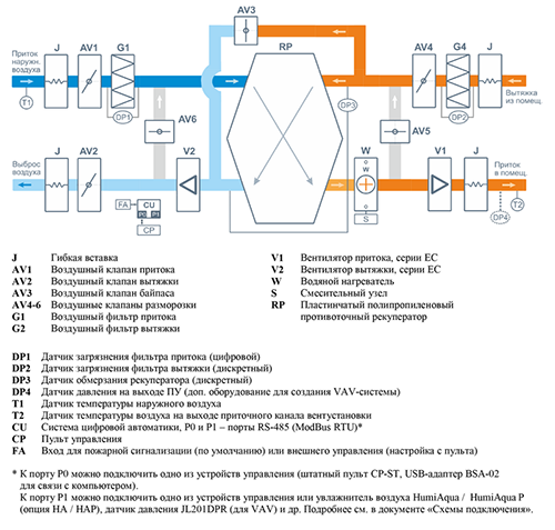 - HAP – Управление увлажнителем с водяным пред- и постнагревателем.