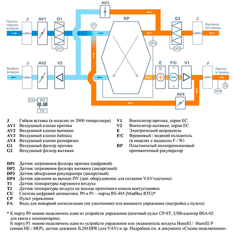 - Укомплектован воздушными клапанами с электроприводом, системой цифровой автоматики JetLogic с цветным сенсорным пультом управления и всеми необходимыми датчиками.