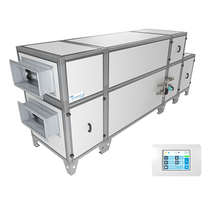 - Приточно-вытяжная установка напольного типа с противоточным пластинчатым рекуператором, системой защиты от замерзания.