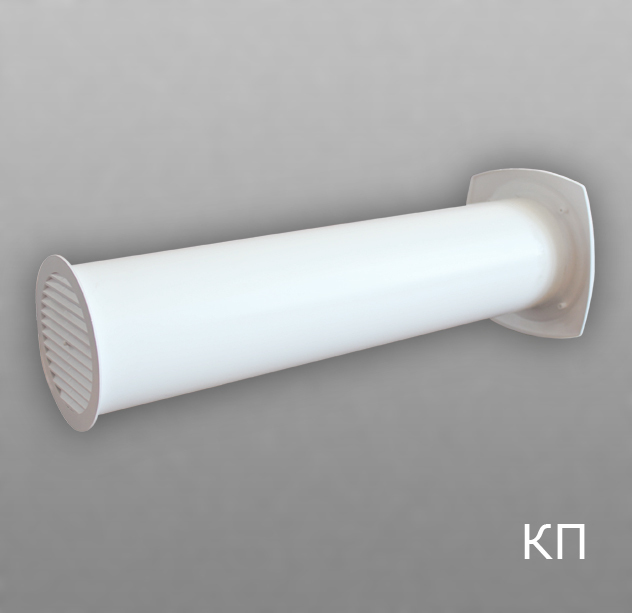 Клапан приточный состоит из пластикового воздуховода длиной от 0,5 до 1м, который монтируется в наружную стену здания. С уличной стороны он закрывается уличным воздухораспределителем.