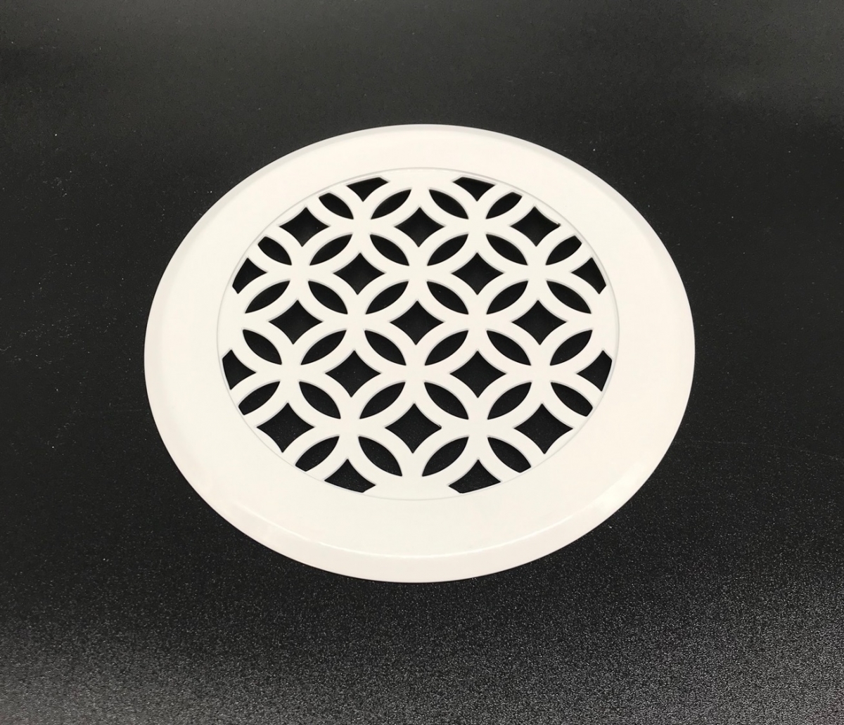 Решетка устанавливается на проем диаметром 100мм и имеет внешний диаметр 140мм