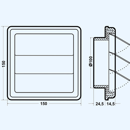 Решетка 150х150 D 100 с гравитационными жалюзи (1515К100Ф)