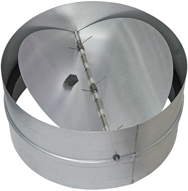 Обратный клапан 355СКЦ с подпружинными лопастями обеспечивает автоматическое перекрывание круглых воздуховодов при выключении вентилятора.