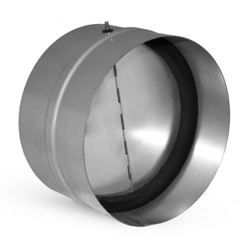 Обратный клапан может быть установлен в любом положении. Конструкция клапана обеспечивает его крепление с воздуховодами и другими элементами системы вентиляции при помощи хомутов. Корпус обратного клапана выполнен из оцинкованного стального листа, лопатки изготовлены из листового алюминия. Внутри корпуса клапана установлено демферное уплотнительное кольцо.