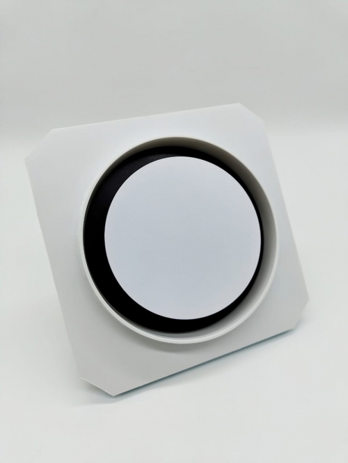 Диффузор состоит из пластикового перехода с площадкой позволяющей удобно и без проблем закрепить диффузор в гипсокартон. Диффузор рассчитан под гипсокартон толщиной 12 мм.