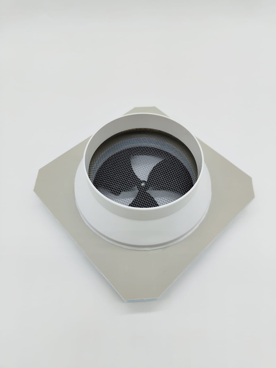 Так же диффузор состоит из металлической заслонкой, которой можно регулировать поток воздуха, либо полностью перекрыть его. К заслонке с помощью магнитов крепится декоративная круглая панелька, которую можно покрасить в цвет потолка. Так же по ободку диффузора имеется молярная сетка, для надёжной фиксации шпаклёвки. Наши диффузоры оснащены москитной сеточкой, которая препятствует попаданию насекомых в помещение.