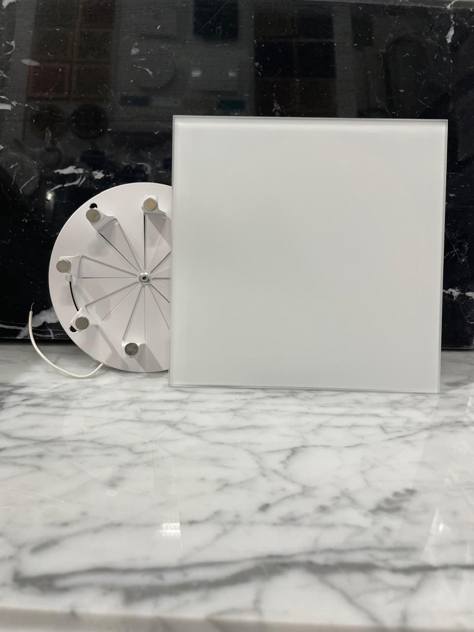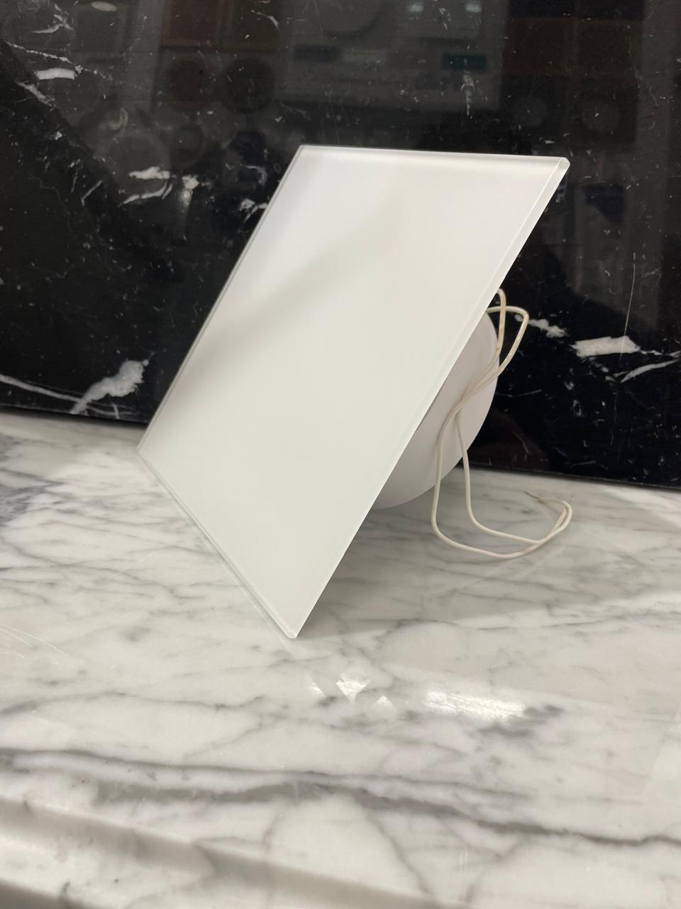 Тонкий бесшумный вытяжной вентилятор для ванной Mmotors ММР-100 матовое стекло квадрат белый 160х160