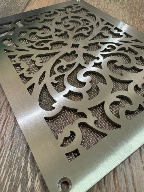 - Рисунок на решетки производится путем лазерной резки с ручной доработкой. Возможно изготовление любого рисунка, любого размера и формы по Вашим эскизам.