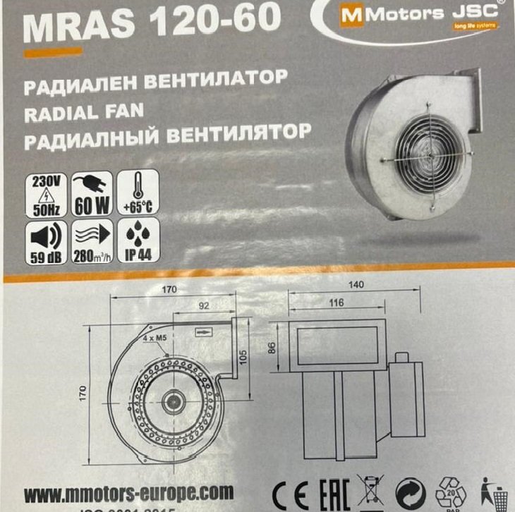 Вентилятор радиальный MMotors JSC MRAS 120х60 в металлическом корпусе