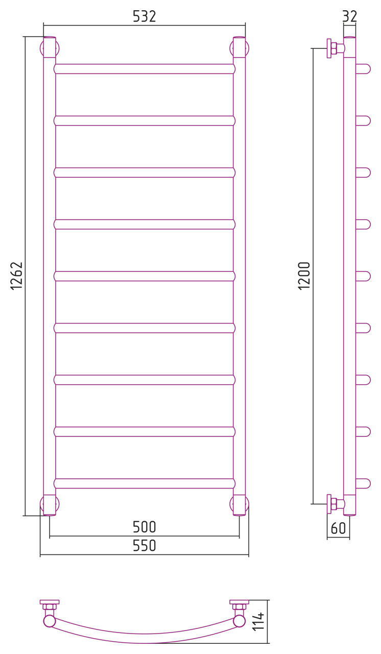 Внешние габариты (высота х ширина х глубина) (мм) : 1262х550x114